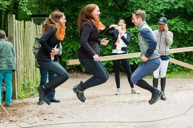 We wijzen de sympathieke, Brabantse Maikel op een foto met een paar vrijwilligers van het CHIO, waarop hij spontaan met ze aan het touwtje springen is en vertellen hem dat dit vrijwilligersteam nog steeds actief is en dat ze benieuwd zijn wat hij dit EK voor hen in petto heeft. Maikel moet lachen en herinnert het zich nog goed: “We zullen zien, ik ben wel in voor zulke dingen. Ook ben ik benieuwd hoe het terrein er uit gaat zien, ik heb al veel positieve dingen gehoord. Al met al heb ik goede verwachtingen, ik hoop dat we iets moois kunnen laten zien.
