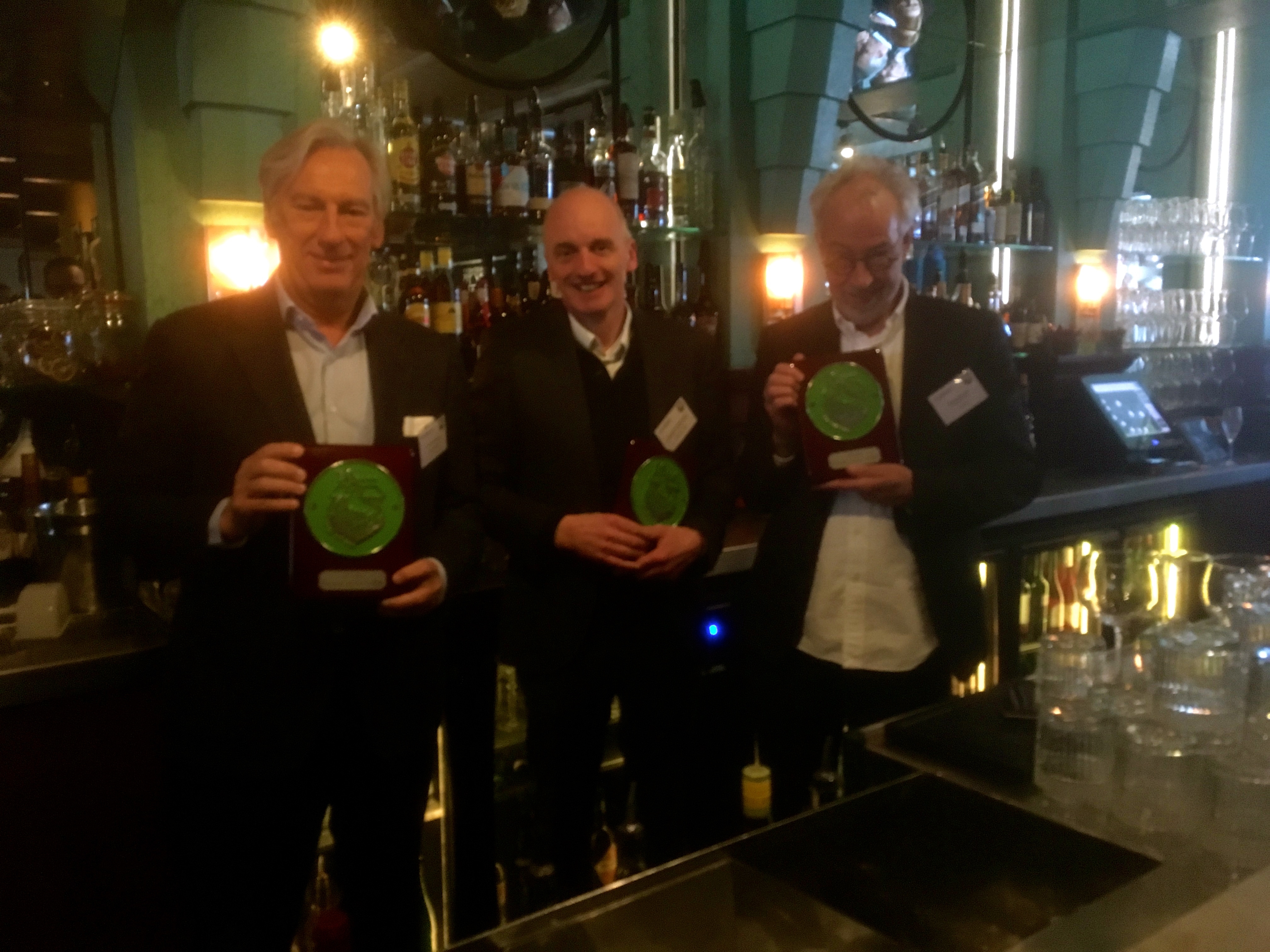 Daarna zette Pieter Baan de vertegenwoordigers van 3 bedrijven in het zonnetje die inmiddels 10 jaar lid van de Vrienden van het CHIO zijn. Martien de Groene (De Groene Groep), Roelof Gortemaker (Gortemaker, Algra en Feenstra) en Henk Moen (Moen & Van Oosten architekten) ontvingen een fraaie jubileumstalplaat. Als nieuwe Vrienden werden vandaag Only the Brave en Boels verwelkomd.